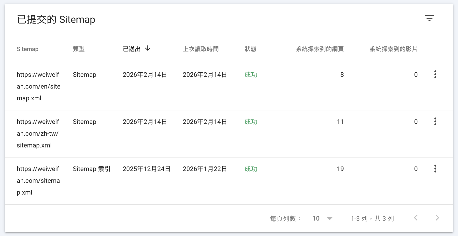 Supplement: If you have multilingual sitemaps, it is recommended to submit all of them as shown below to avoid potential Google indexing issues.