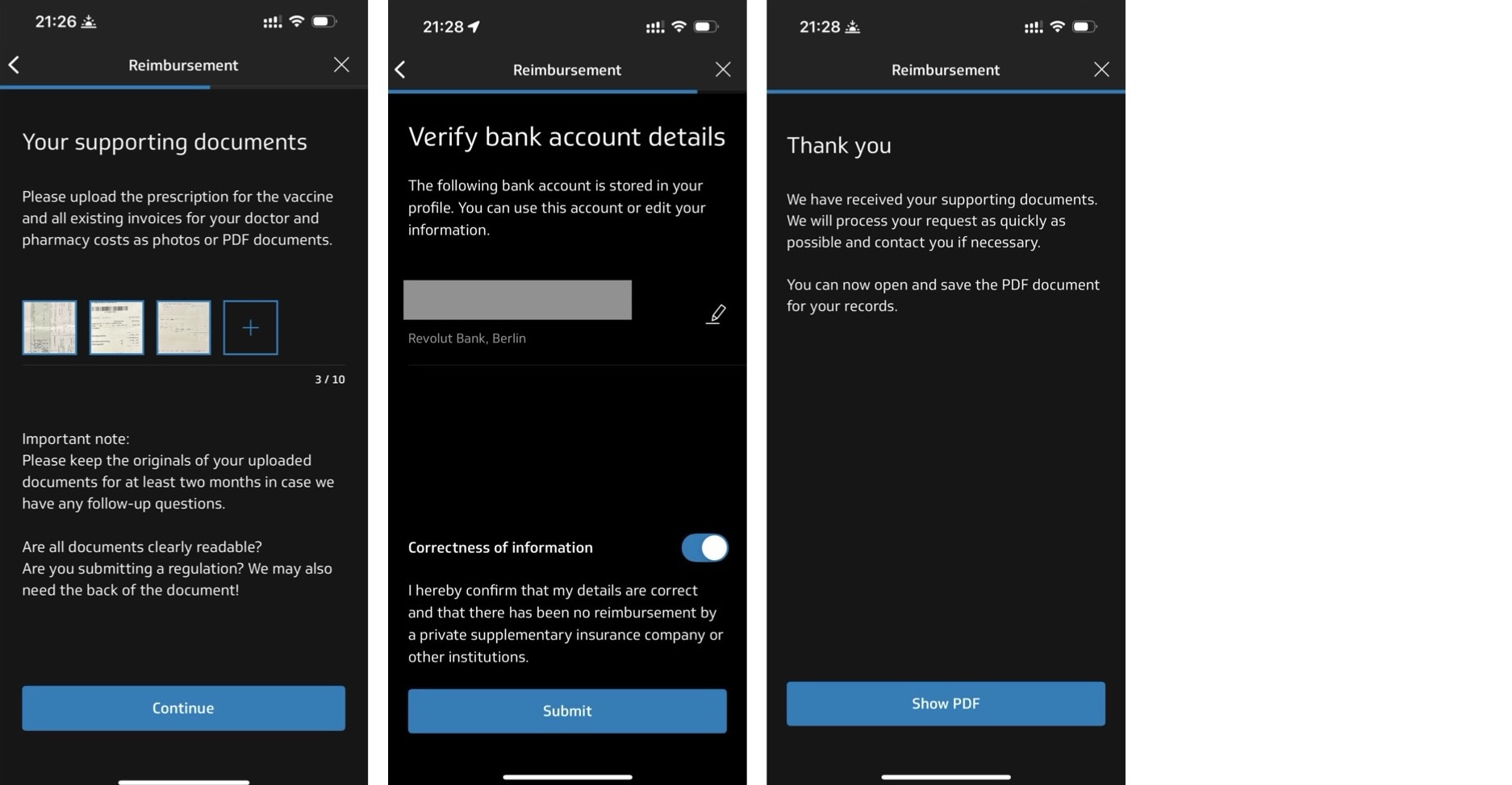 我在提交申請後,兩天內就收到 TK App 的通知,確認核銷金額,再隔一天款項就匯入我的德國帳戶,效率非常高!