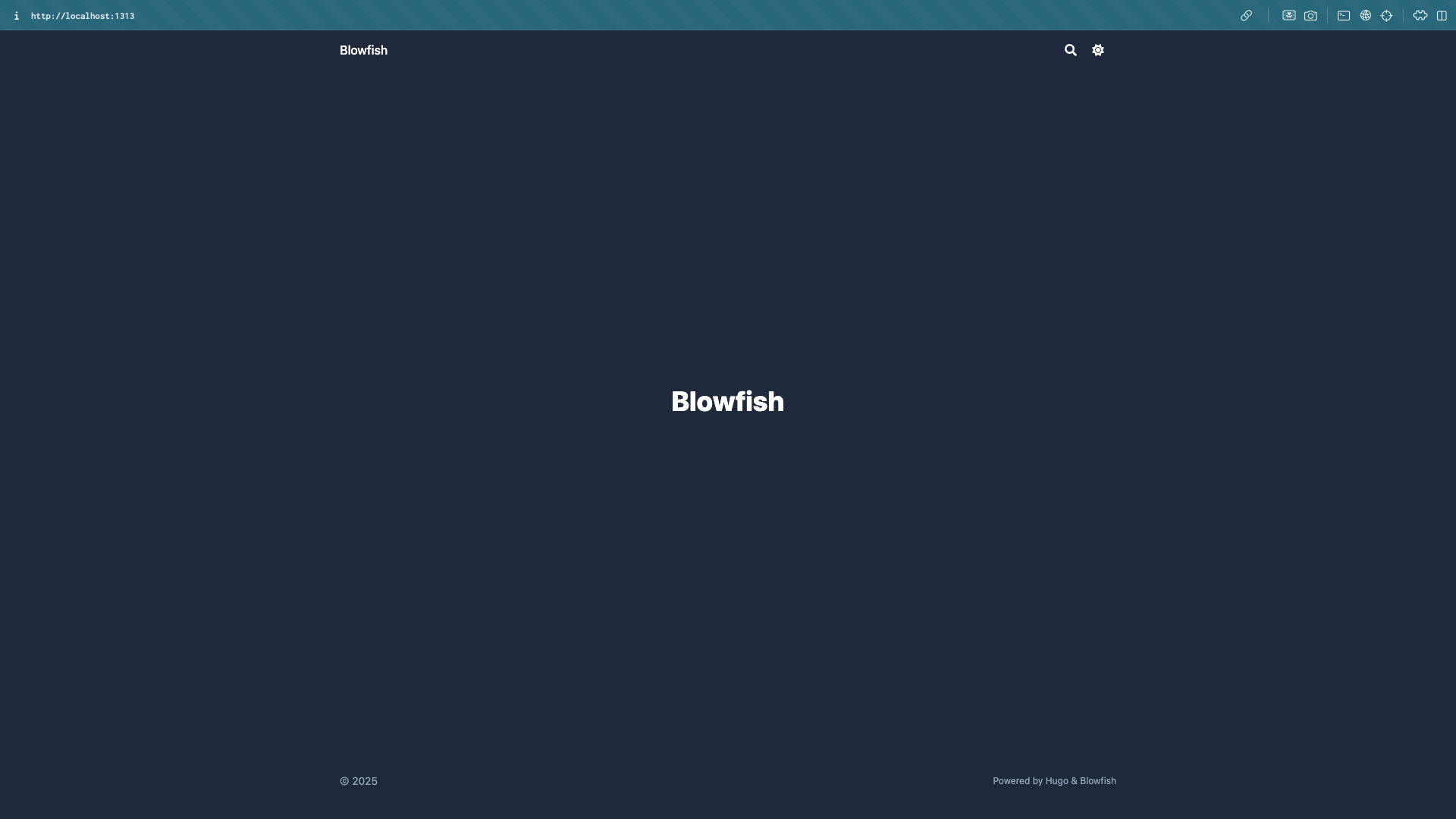 依照輸出的提示,在瀏覽器上輸入 localhost 網址,通常是 http://localhost:1313/,就會看到很陽春的頁面: