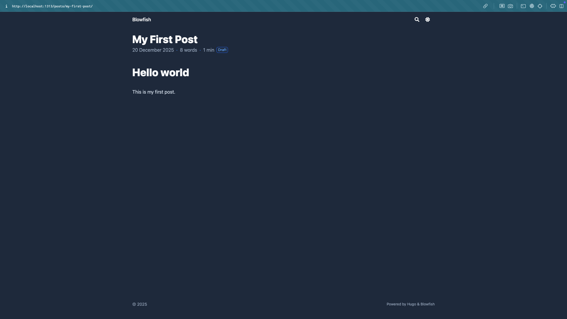 theme = "blowfish" # UNCOMMENT THIS LINE`新增文章#