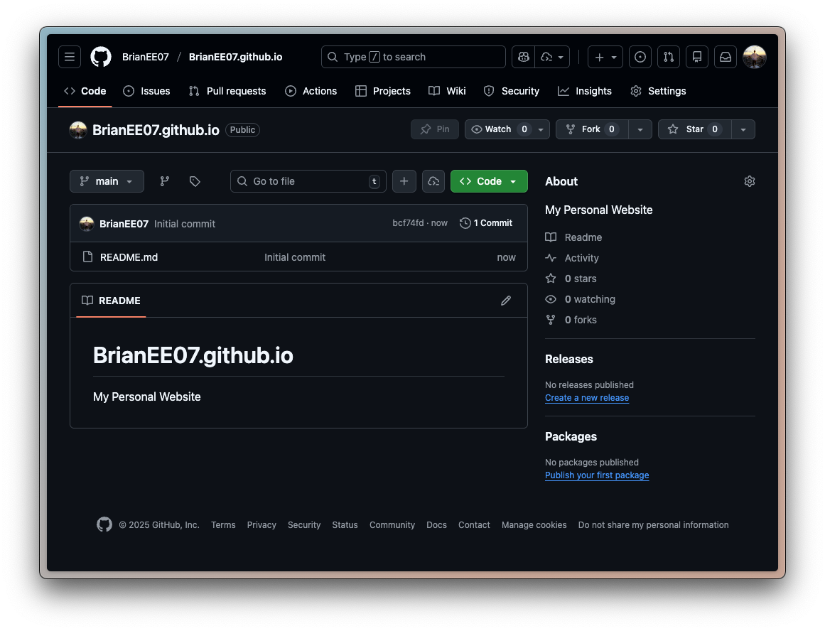 相信你點進這個網址, https://brianee07.github.io/ ,會發現網址跳轉到 https://weiweifan.com/ 。下一篇我會介紹怎麼設定自己的網域名稱~