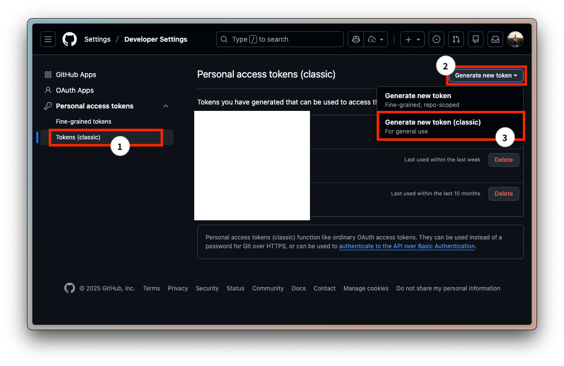 error: failed to push some refs to 'https://github.com/BrianEE07/BrianEE07.github.io.git'去 GitHub 右上角個人頭像 → Settings → Developer Settings → Personal access tokens → Tokens (classic) → Generate new token (classic)。